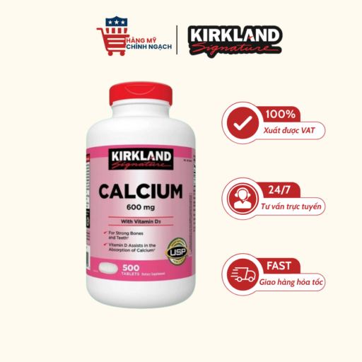 Viên Uống Bổ Sung Canxi Cho Xương Răng Chắc Khỏe Kirkland Signature Calcium 600mg with Vitamin D3 500 Viên