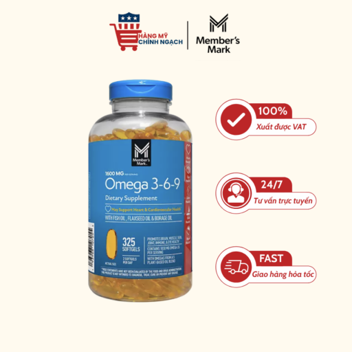 Viên Uống Dầu Cá Cung Cấp Omega-3 Hỗ Trợ Não Bộ và Tim Mạch Member’s Mark 325 Viên