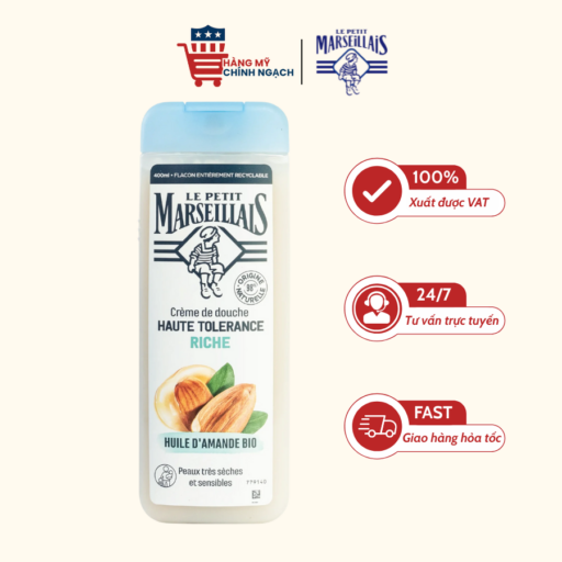 Sữa Tắm Hữu Cơ 98% của Pháp Dịu Nhẹ Sáng Hồng Da Le Petit Marseillais Hương Hạnh Nhân 400ml