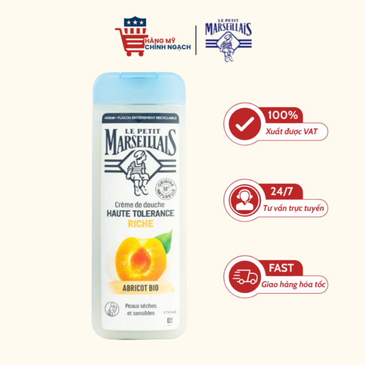 Sữa Tắm Hữu Cơ 98% của Pháp Dịu Nhẹ Làm Sáng Mịn Da Le Petit Marseillais Hương Quả Mơ 400ml