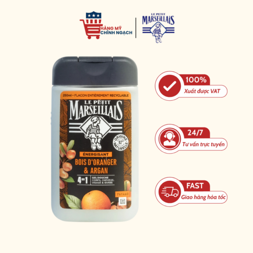 Sữa Tắm Hữu Cơ 92% 4in1 Cho Nam Dịu Nhẹ Giúp Da Sáng Mịn Le Petit Marseillais Hương Cam Và Tinh Dầu Argan 250ml