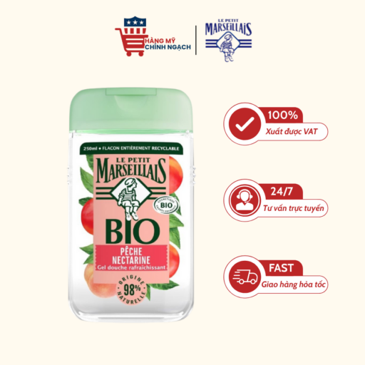 Sữa Tắm Hữu Cơ Pháp 98% Dịu Nhẹ Làm Da Sáng Mịn Le Petit Marseillais Hương Đào Trắng 250ml