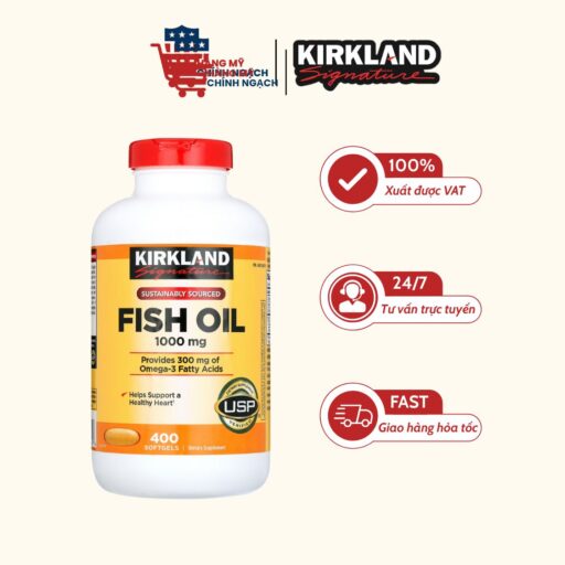 Dầu Cá hỗ trợ tim mạch, bổ sung Omega-3 Kirkland Signature Fish Oil 1000mg 400 viên