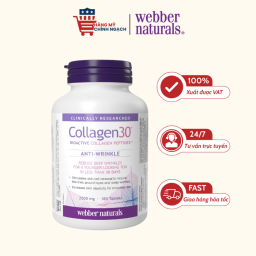 Viên Uống Collagen 30 Verisol 2500mg Bioactive Peptide Hỗ Trợ Đẹp Da Mọc Tóc và Móng Webber Naturals – 180 Viên
