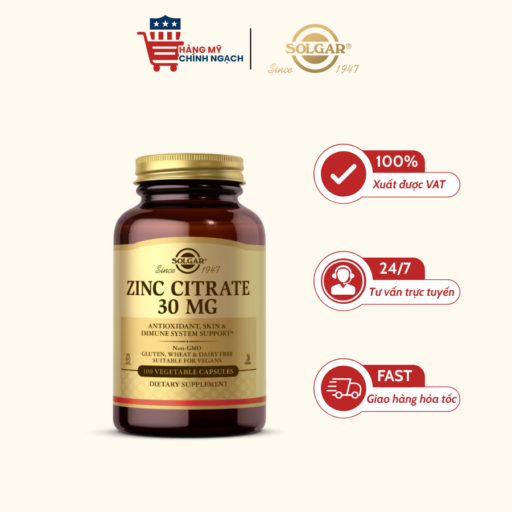 Viên Uống Bổ Sung Kẽm Cho Cơ Thể Tăng Cường Sức Khỏe Cho Phái Nam Solgar Zinc Citrate 30mg – 100 Viên