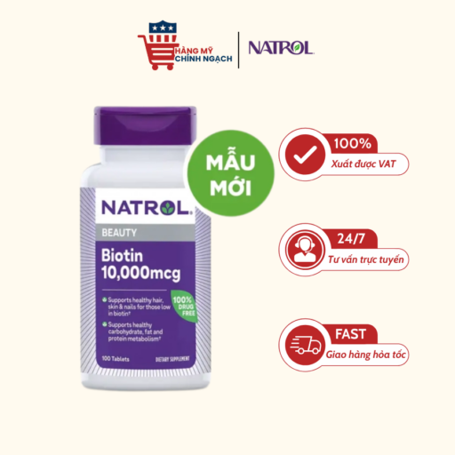 Viên Uống Mọc Tóc Móng Hàm Lượng Cao Natrol Biotin Maximum Strength 100 Viên
