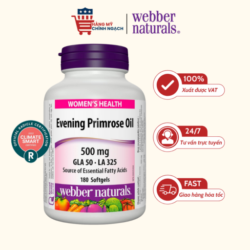 Tinh Dầu Hoa Anh Thảo Hỗ Trợ Đẹp Da Đẹp Dáng Webber Naturals Evening Primrose Oil 500mg GLA 50 – 180 Viên