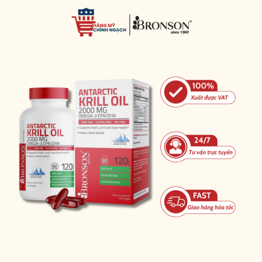 Dầu Nhuyễn Thể Hỗ Trợ Tim Mạch Não Bộ Bronson Krill Oil 2,000mg-120 Viên