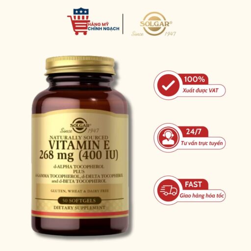 Solgar Vitamin E 400 IU 50 viên – Chống Oxy Hóa, Hỗ Trợ Da & Tim Mạch