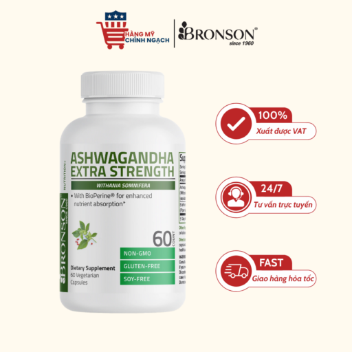 Viên Uống Nhân Sâm Ấn Độ Giảm Căng Thẳng Bronson Ashwagandha Extra Strength 3,000 mg – 60 Viên