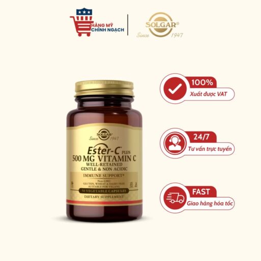 Solgar Ester-C Plus 500mg | Vitamin C Không Acid Hỗ Trợ Miễn Dịch 50 Viên