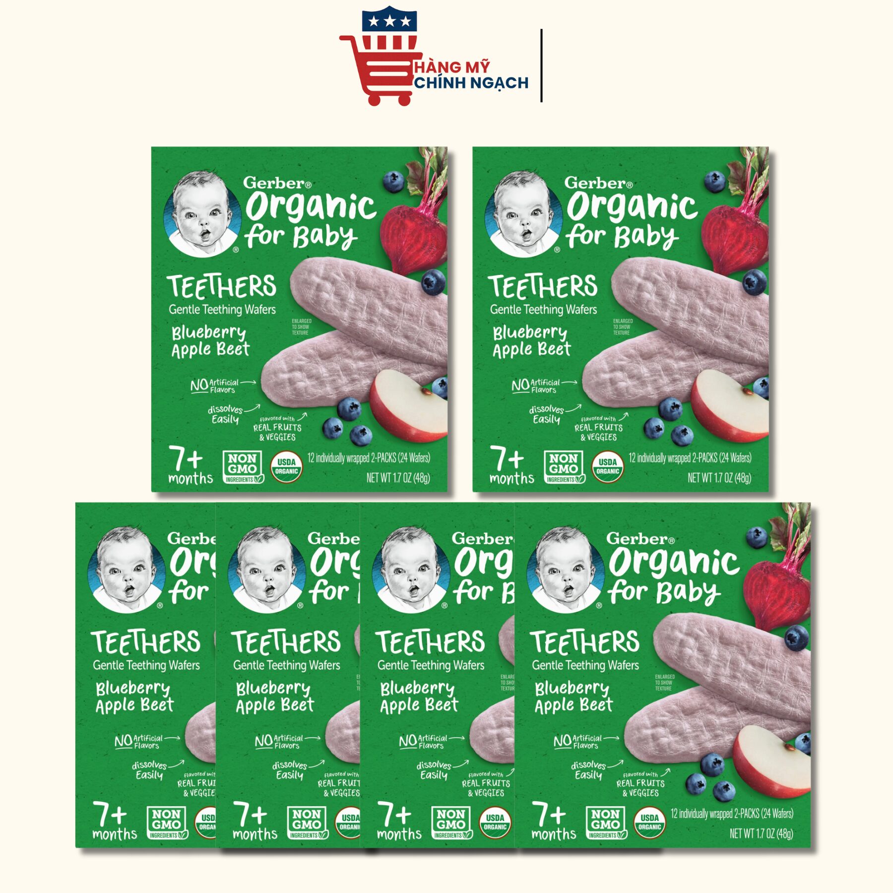 Bánh ăn dặm Gerber Organic Teethers Blueberry Apple Beet 48g