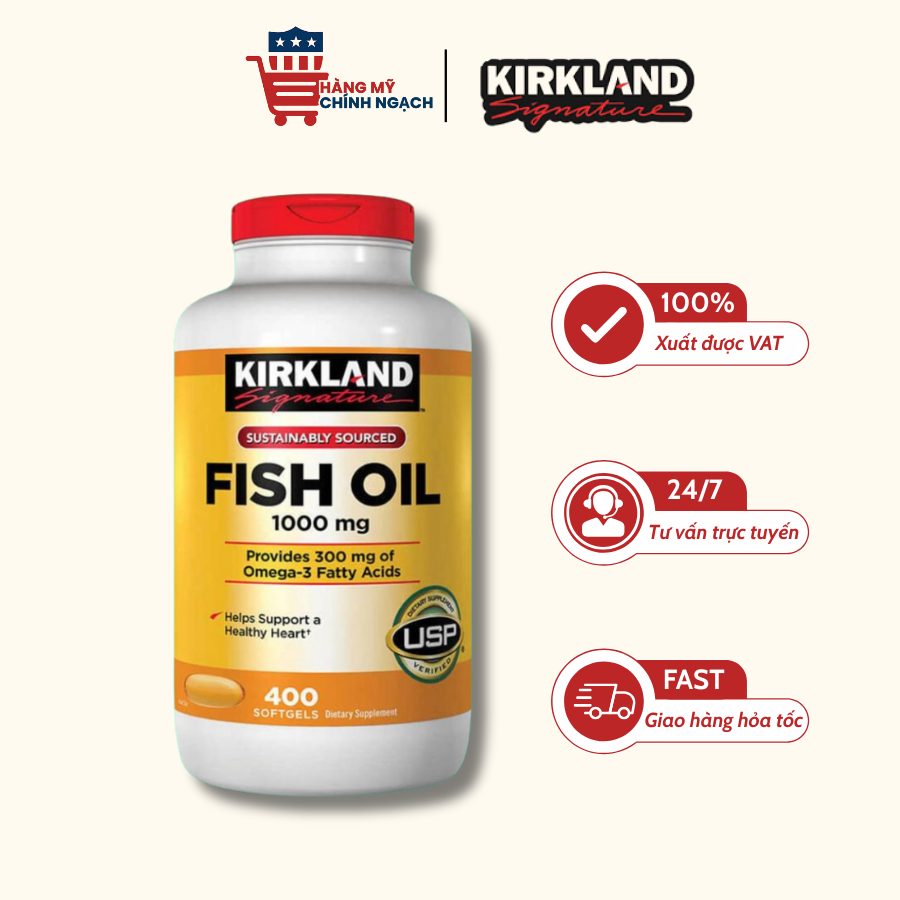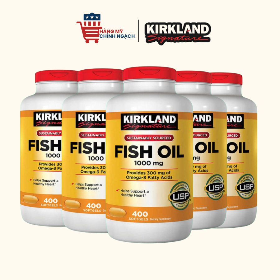 Kirkland Signature Fish Oil 1000mg là sản phẩm bổ sung Omega-3 từ dầu cá tinh khiết, thuộc thương hiệu Kirkland Signature (Mỹ). Sản phẩm được chiết xuất từ cá biển sâu, đạt tiêu chuẩn IFOS, USP, giúp mang đến Omega-3 chất lượng cao, tốt cho tim mạch – trí não – thị lực – xương khớp.