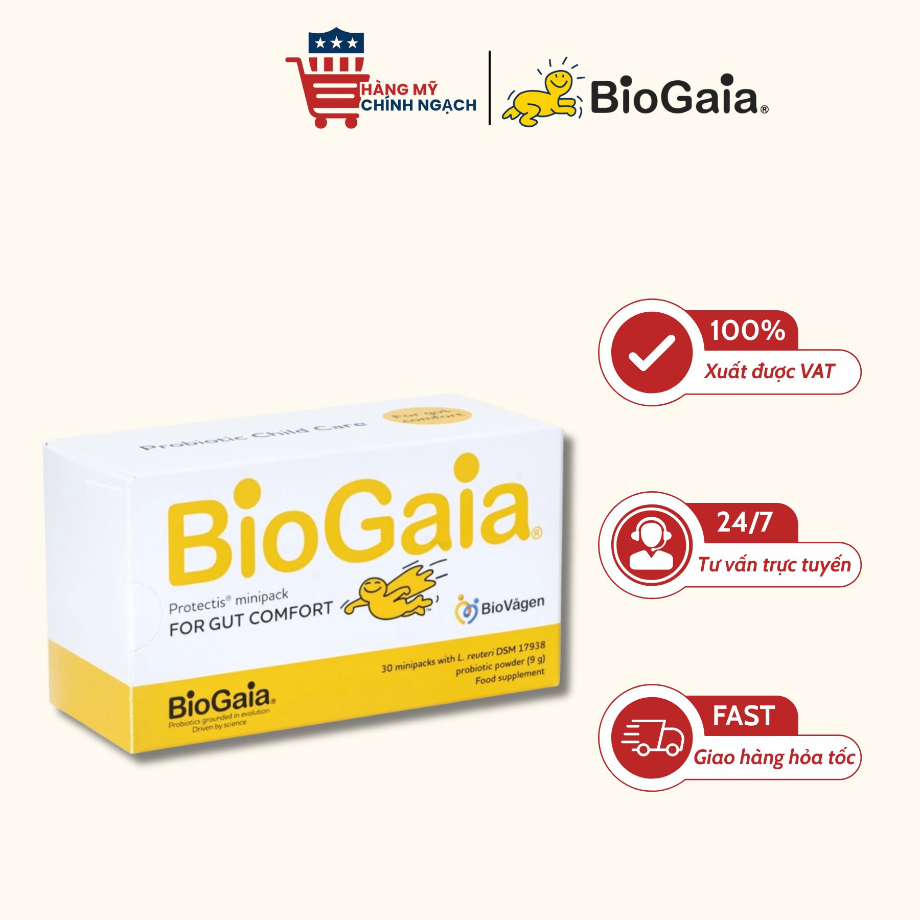 Men vi sinh hỗ trợ cân bằng hệ tiêu hóa BioGaia Protectis Minipack dạng bột bổ sung lợi khuẩn L.reuteri Protectis giúp hỗ trợ giảm đầy hơi, cải thiện tiêu hóa cho trẻ.