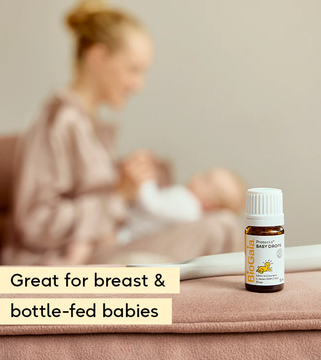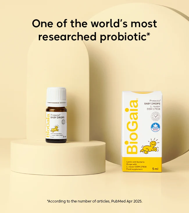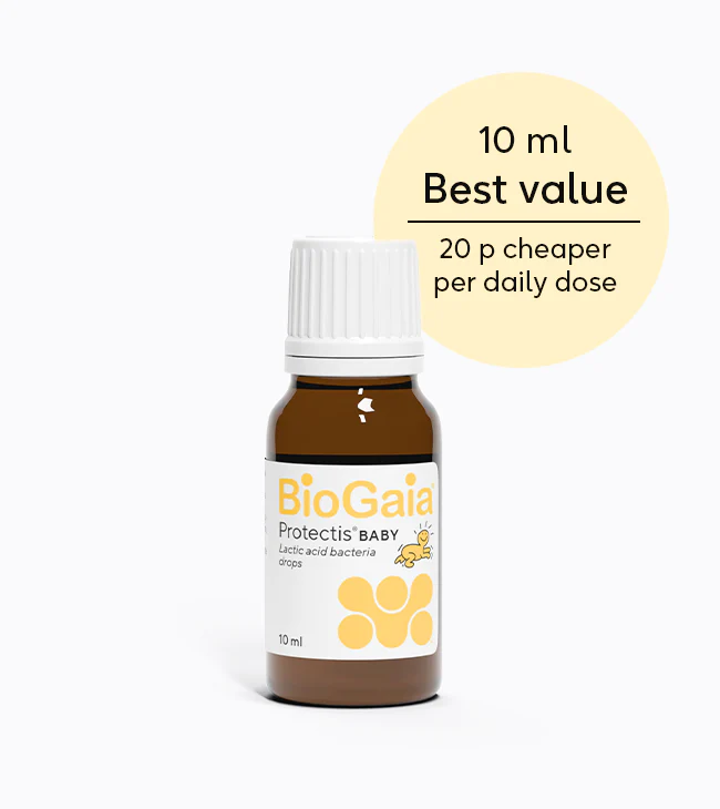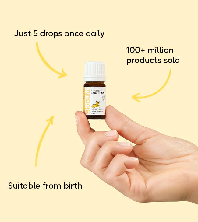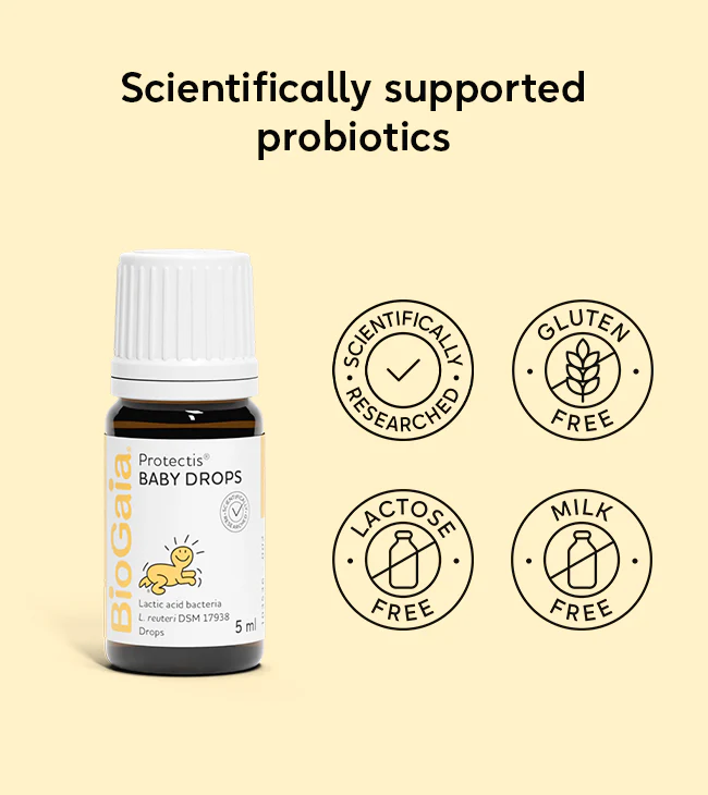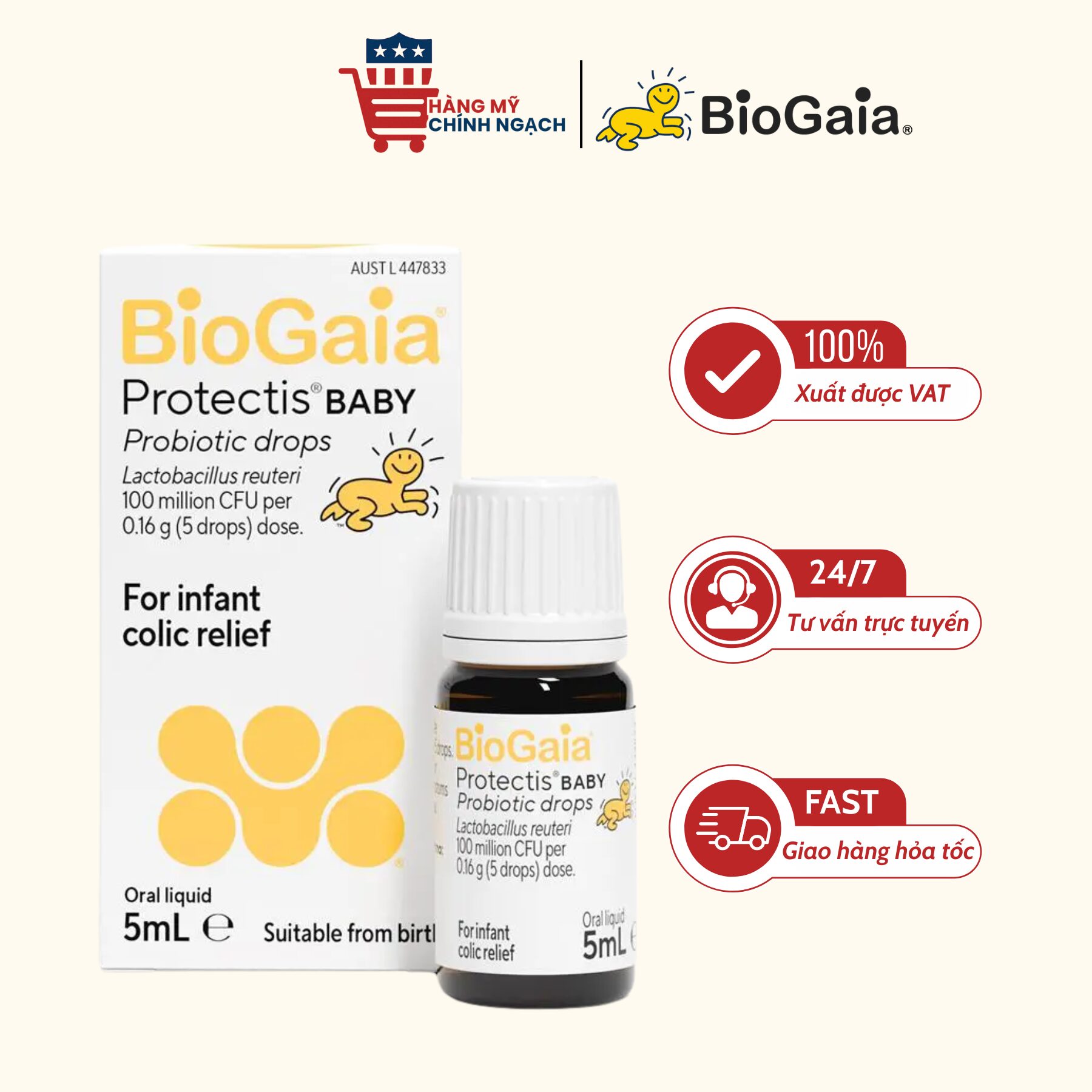 Men vi sinh hỗ trợ tiêu hóa cho trẻ sơ sinh BioGaia Protectis Baby Probiotic Drops 5ml giúp bổ sung lợi khuẩn Lactobacillus reuteri, hỗ trợ cân bằng hệ vi sinh đường ruột và cải thiện tình trạng đầy hơi ở trẻ nhỏ. Sản phẩm dạng nhỏ giọt tiện lợi, phù hợp sử dụng hằng ngày cho trẻ từ sơ sinh.