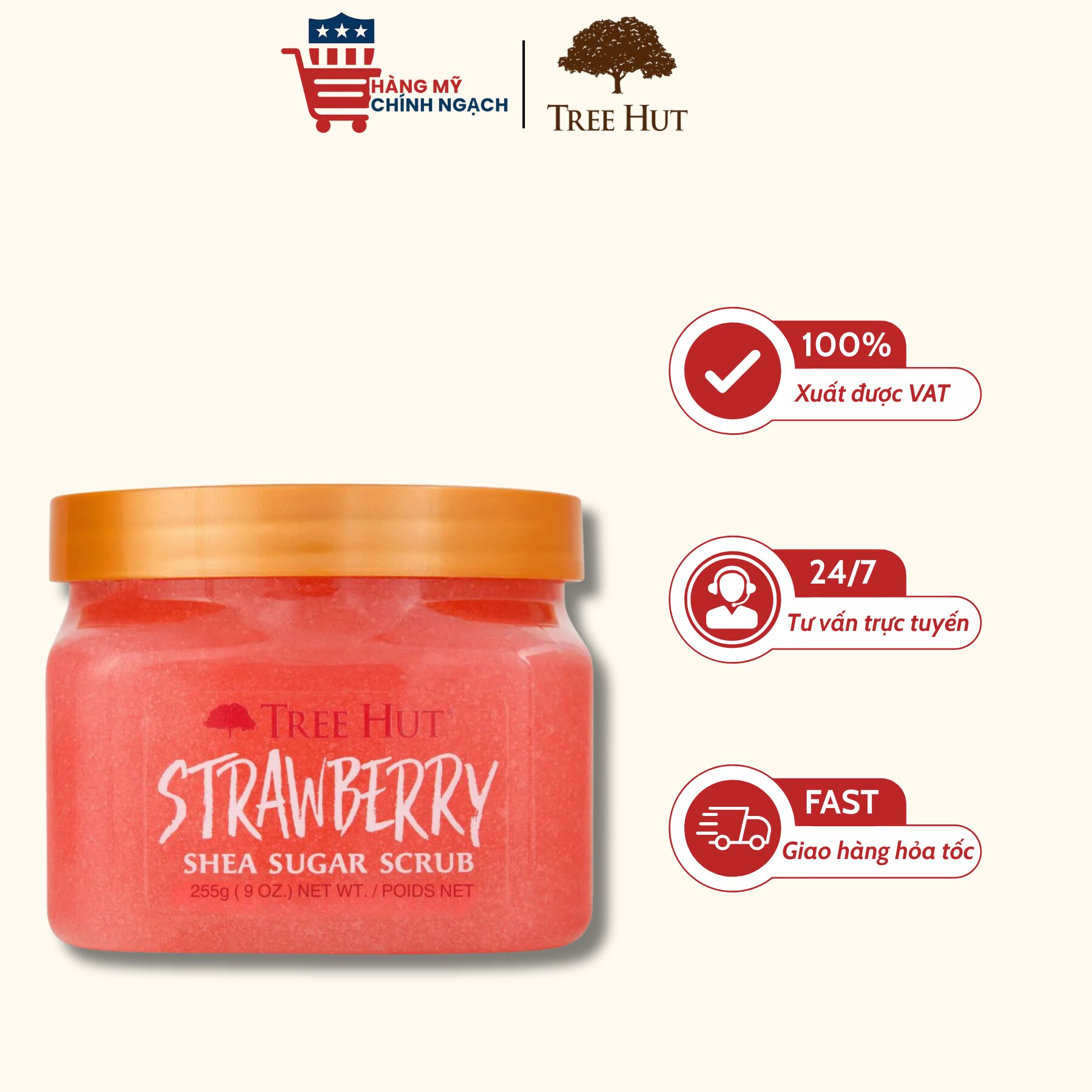 Tẩy tế bào chết cơ thể Tree Hut Strawberry Shea Sugar Scrub 255g là sản phẩm chăm sóc da đến từ thương hiệu Tree Hut (Mỹ). Sản phẩm sử dụng hạt đường tự nhiên kết hợp Shea Butter và chiết xuất dâu tây, giúp loại bỏ tế bào chết, làm sạch da và hỗ trợ dưỡng ẩm cho làn da mềm mại hơn.